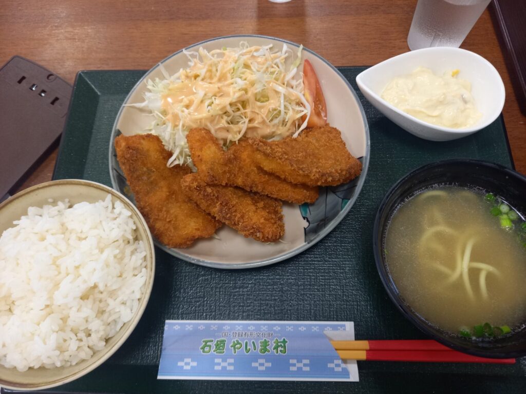 八重山そばを食べたいと思っていましたが、この日は実家でそば出汁を作っていたのでいらぶちゃーの魚フライ定食にしました。